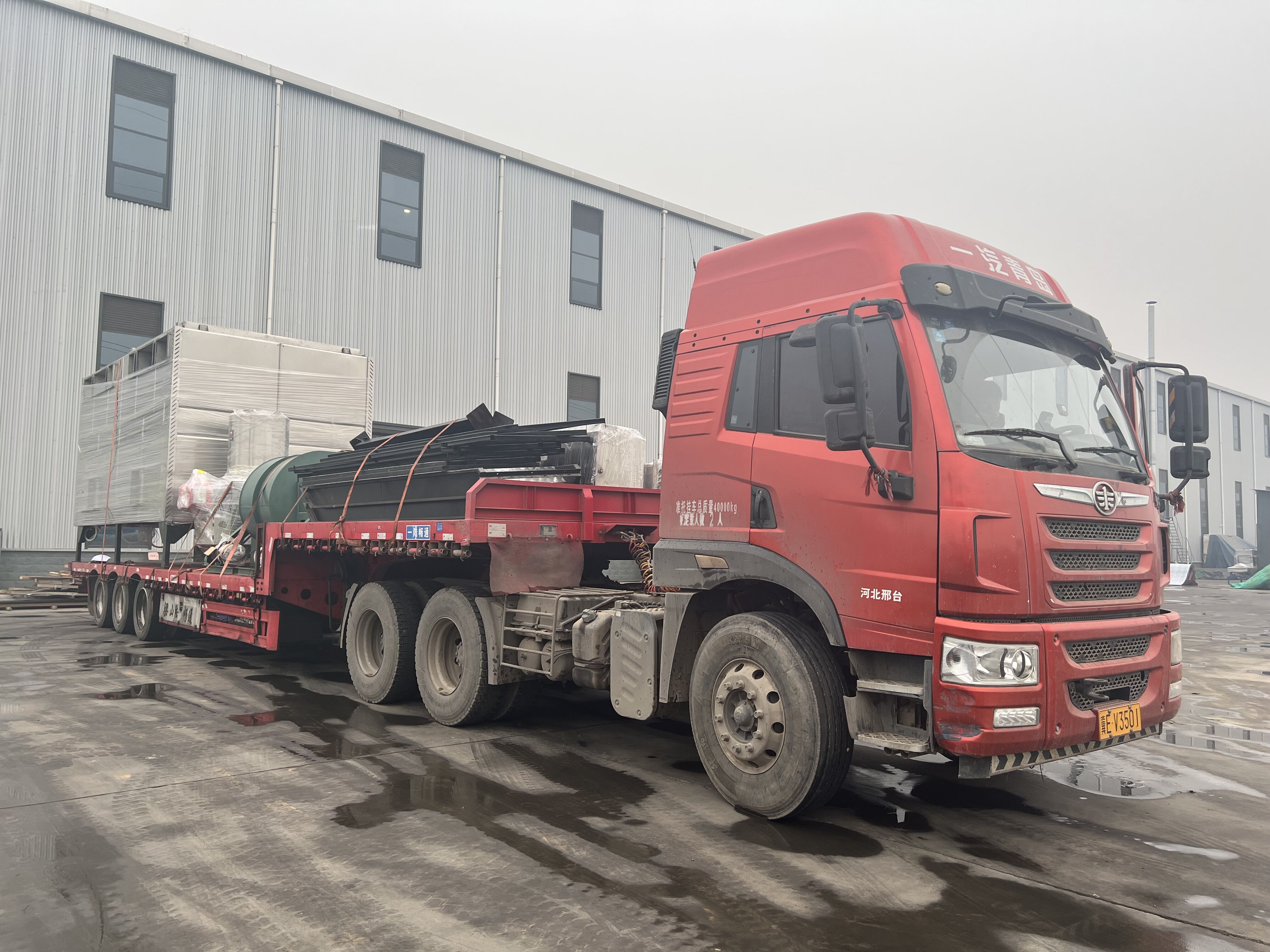 山东省荷泽市蜂窝鸳鸯烤池1台,裙边出料皮带1台,6号风机2台,平面燃烧热风炉(一拖二)1台,操作平台一套,风道一套发货,