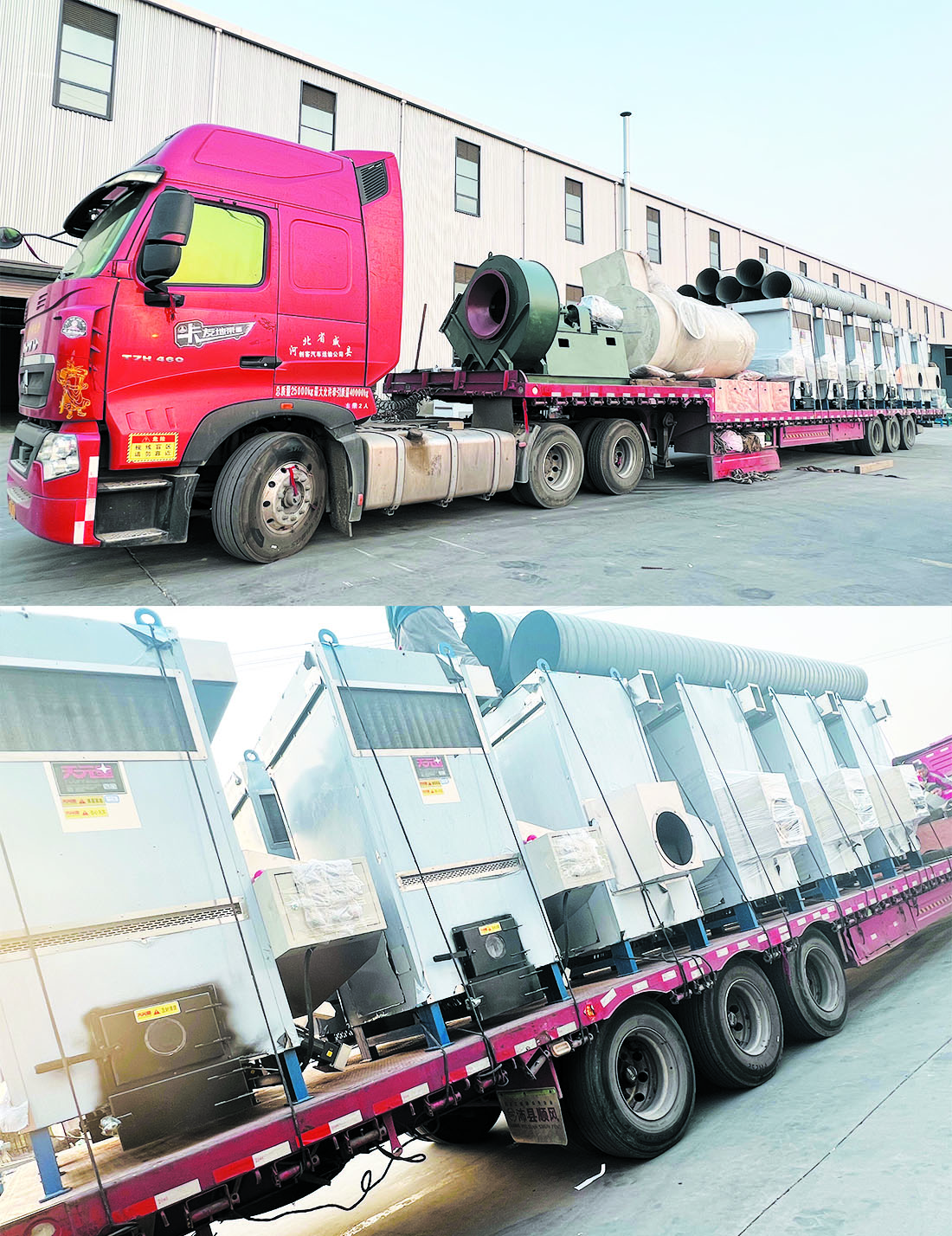 辽宁省锦州市新款生物颗粒热风炉一体机(120型4右8左)12台,30kw风机,水幕除尘器发货